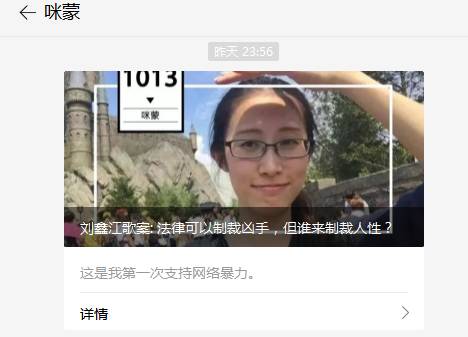 咪蒙老师写的东西一直深受大家喜爱,心直口快,直抒胸臆。但这次,似乎欠妥。您自己支持网络暴力,真的没问题。很多媒体人你们私下骂的酣畅淋漓,其实都没什么。但你们公开发声的意义就不一样了,大家的影响力真的太大了,不是普通人写一个简单的评论就结束了,你们发文章、微信、微博、遍布互联网各个端口,引导着社会的舆论,口诛笔伐啊!