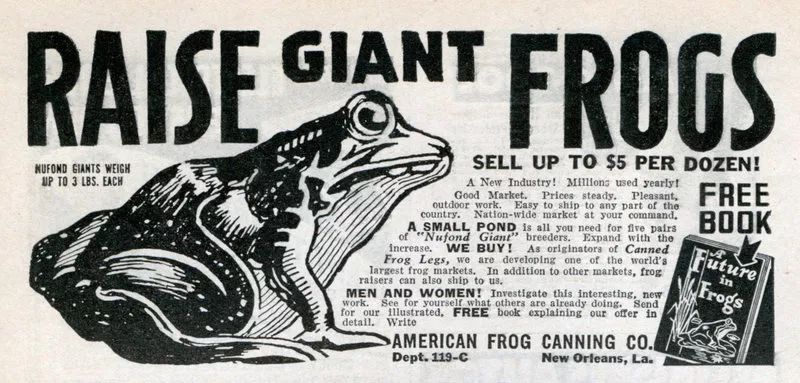 大多数人以为,只有中国人是青蛙的狂热爱好者,他们可以用麻辣、干锅等各种做法满足自己的食欲。但是可能他们都不知道,早在上世纪30年代,美国人就已经量产蛙肉了。
