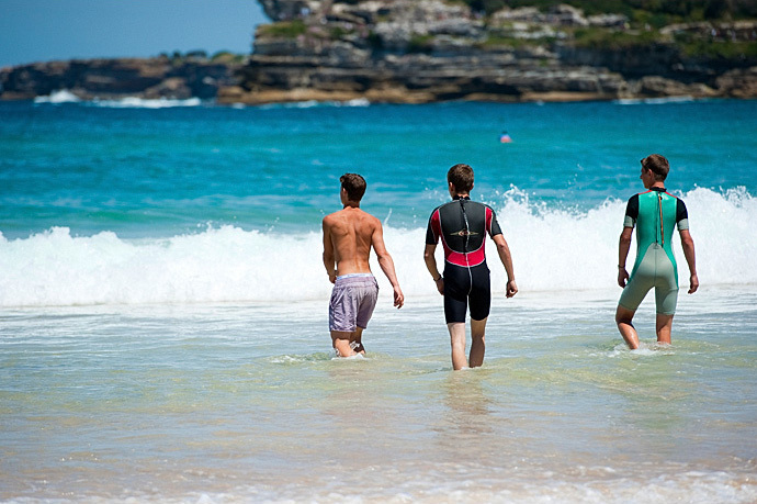 邦迪海滩绵延一公里多,前来袒胸露背的悉尼各界人士络绎不绝。除了汹涌澎湃的海浪、迎风飞翔的海鸥、防晒霜的香味等最基本的要素之外,邦迪海滩也有它自己独特的风格。这是一个我看人、人看我的地方,谁都不会显得太黑、太瘦或太壮。邦迪之所以如此受欢迎,还有一个重要的因素就是她的位置距离城市最近,开车或者坐地铁都非常方便。且海滩对面的街上有各式餐饮、咖啡店,餐馆室内面积很小但门前都会设有露天座位,可以一边就餐一边欣赏对面的美景,身边还会不时走过身着比基尼的各国美女。