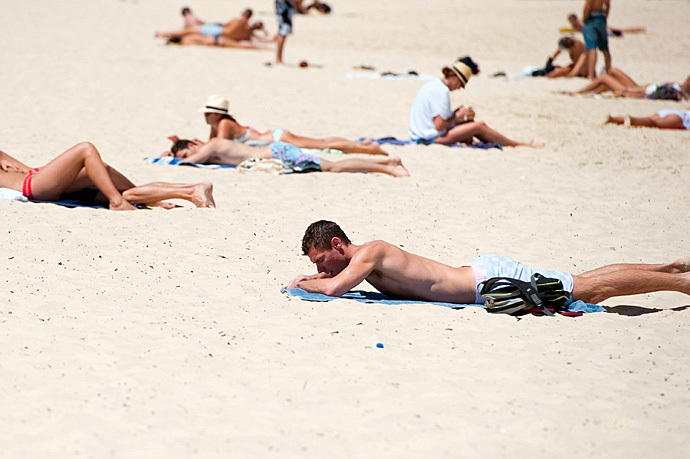 悉尼人热爱运动,在海滩边、公园里、甚至街道上,随时都可以看到跑步锻炼的人们。远处沙滩上满目都是享受阳光沐浴的美眉。