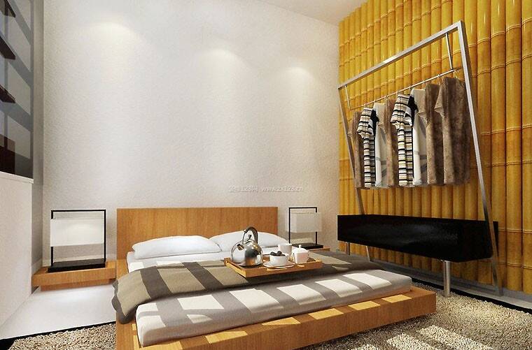 A、围基式。即将家具沿着四壁陈设,常将床也靠墙摆放。这种格式简洁明快,室内活动区域较大,能体现出亲切宜人的生活气息。这较适宜于14平方米以下的小房间。