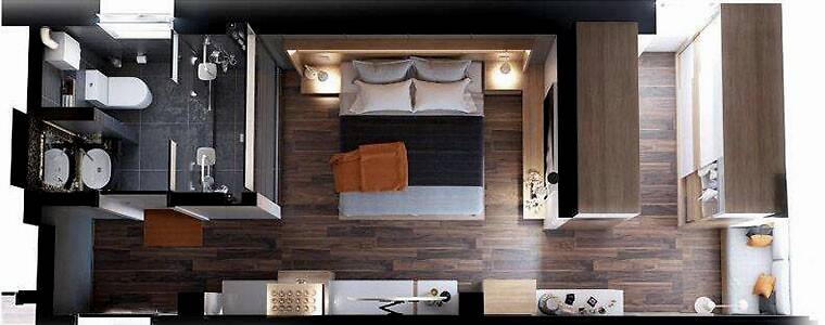 5、巧布置单身公寓的家具。单间居室的家具摆设通常有两种:
