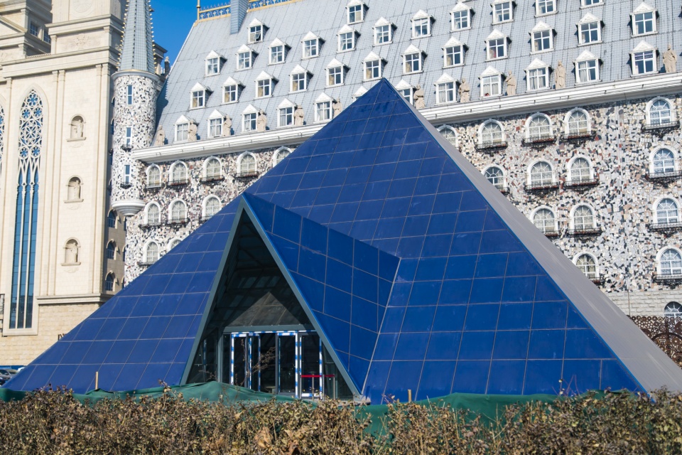 这座神奇的学校还在不断的建设中,北校区的文峰塔还支着脚手架,而走进城堡和金字塔,也发现正在做内部装修。