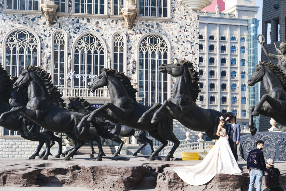 而在甄忠义的宏伟蓝图中,他要将这所大学打造成“世界美术的中心”。在对外的宣传中,这所民办院校也被描述成中国“九大美院之一”,而实际上,中国的美术学院系统只有“八大美院”之说。图为远眺仿建的伦敦塔桥,因为不是学生,所以禁止入内观看。