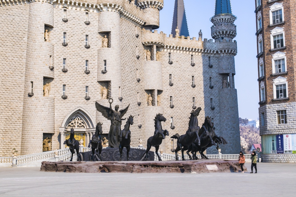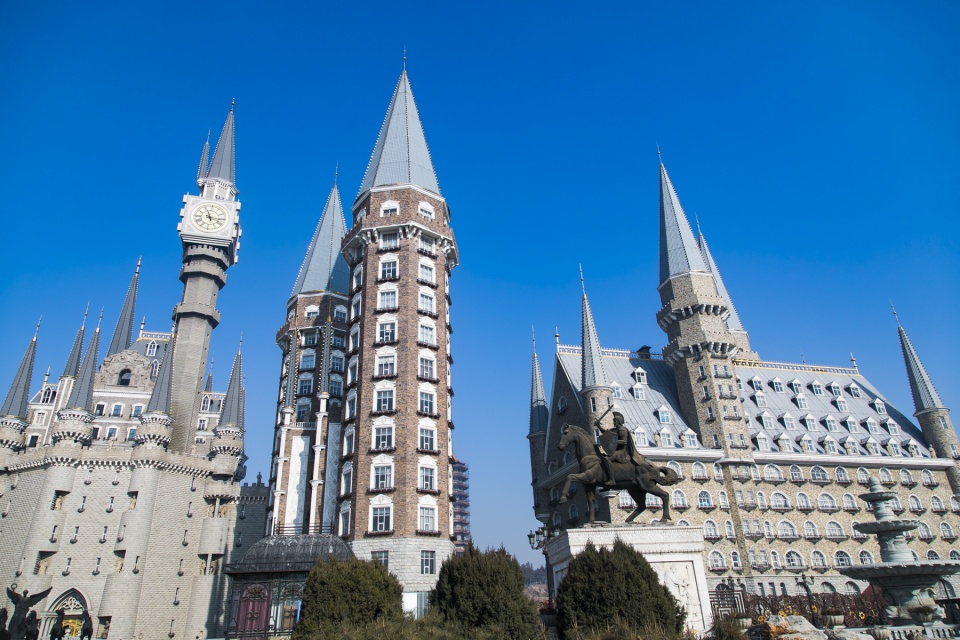 这所学校除了欧式城堡之外,还陆续修建了伦敦塔桥、荷兰大风车、中式古塔、明清古建筑一条街,甚至连学生食堂都是海盗船的造型……据说,目前整个校园的造价已经超过50亿人民币。穿梭在学校里,就像进入了一座魔法城堡,那么这样一所美术学院为什么要山寨哈利波特魔法学校呢?