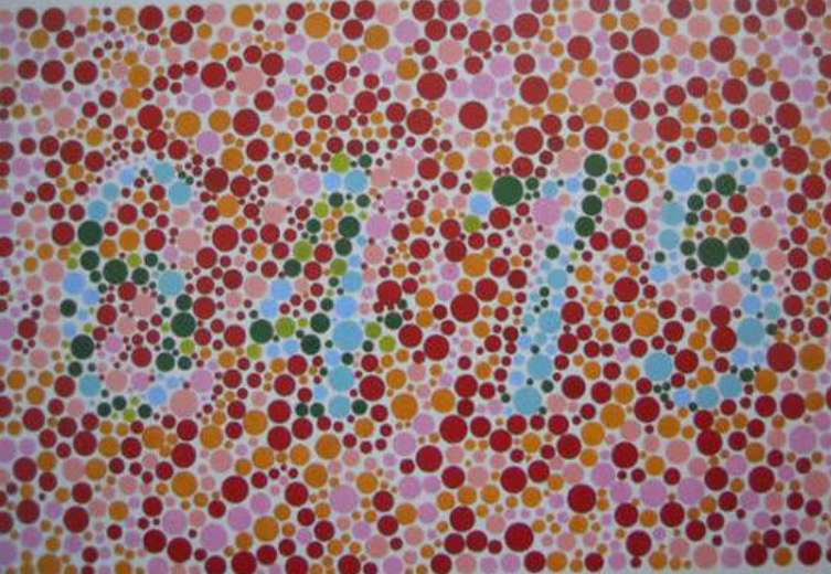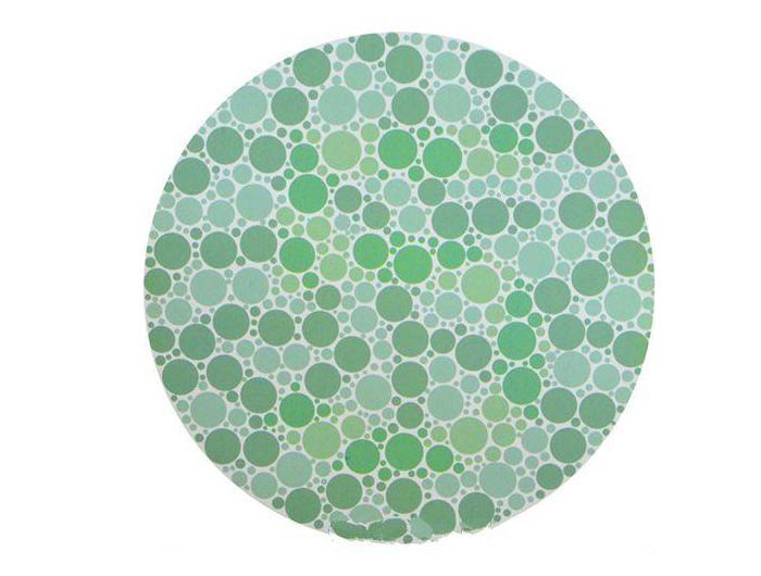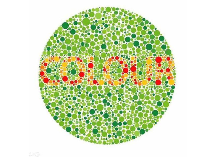 图1:首先,我想和大家分享一张简单的色盲检测图!如上图所示,颜色系是非常明确的区分了,分别是绿色、红色、黄色有三大色系的颜色组合在一起,一般正常人能在三秒钟内看出答案,那你就不是色盲,如果你看不清图中的正确答案和颜色的话,那你很可能是色盲。