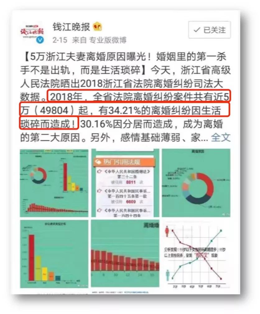 2018年,全省有近5万对夫妻离婚,排在第一位的原因,不是出轨,不是家暴,不是钱,而是生活琐事!