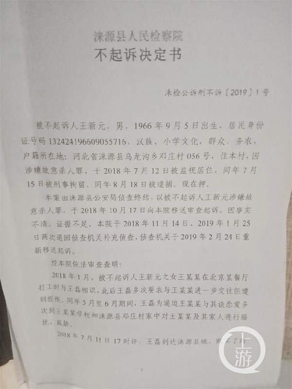 235天后的2019年3月3日,保定市检察院的一纸决定让这家人如释重负。检方认为,王新元、赵印芝的行为属于正当防卫,不予以起诉。在之前的2月24日,涞源县公安局做出决定:不追究小菲刑事责任,解除取保候审强制措施。