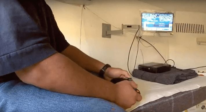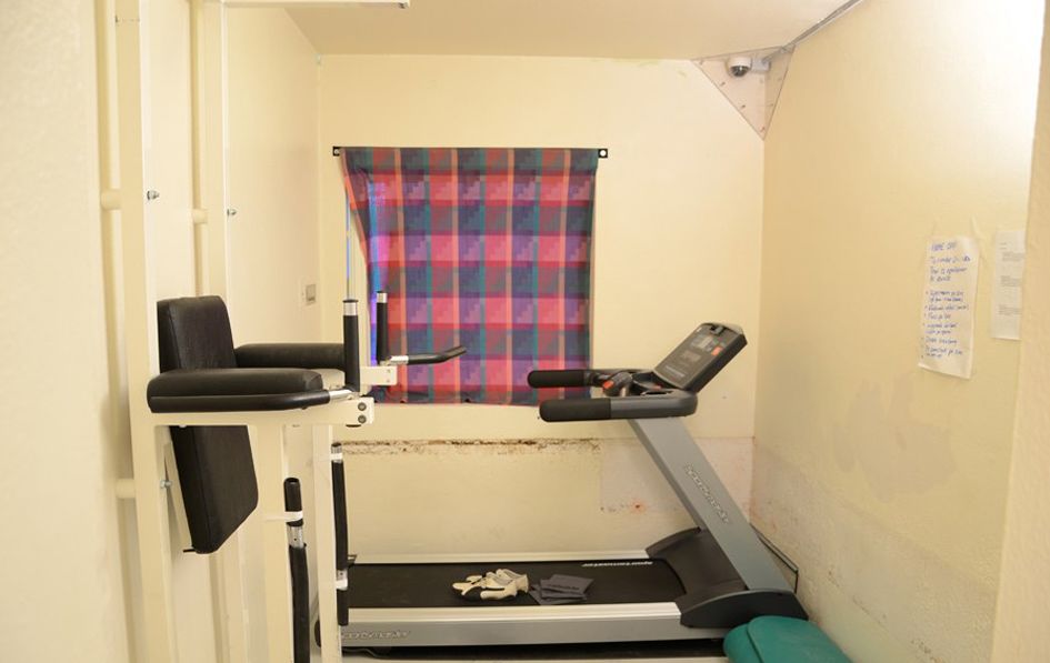 布雷维克有自己的独立的牢房,10平方米里套房里有三个房间,分别可以休息、健身和劳动。