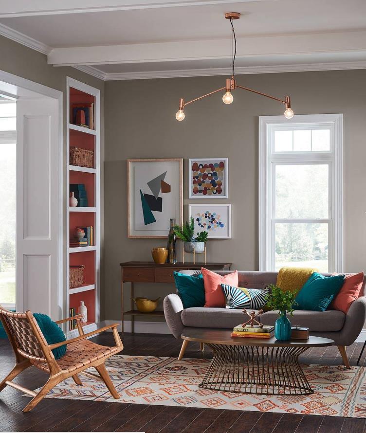 客厅的家具比较多,高低大小甚至颜色都可能有所不同,所以在视觉的协调对称上要慎重搭配,以求美观。