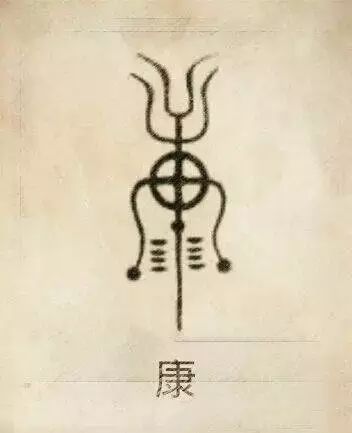 康姓图腾,是天表重的简化。伏羲氏木正共工氏康回嫡传子孙。共工氏因主持天表而称为康回。“回”是灵台方坛。康上为牙璋,中为玑盘,天竿两侧四点为圭度,即八卦历度。周有康叔,得康姓。始祖:康叔。