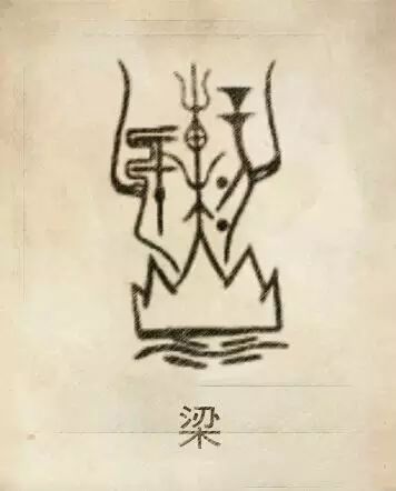 梁姓图腾,梁姓是大山槫木纪历图腾由水、刃、木(槫木)组成,以刀(辛)刻木为纪历方法。此山名“梁山”,在泰山,古代封禅之地。又有“梁州”,是梁人聚居之地。“梁山”山下有水,山四周环水,山中央主峰为天齐,上立槫木,又名重章东,又名,左手持弓、于,即浑仪和矩尺;右手持刀具契刻日升降度位,故为“”。蠃姓别支,始祖周代秦仲,因居梁得姓。由来:得姓始祖:东周初期,周平王之子梁唐