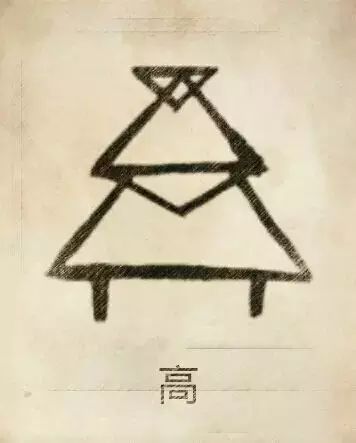 高姓图腾,高姓图腾是高族的族称。高族首创了观天象危屋华盖“天余”(天脐)建筑形式。“-” 像天余的“个”形尖顶,取像天穹。“冋”是立的坛台,或者像高出平地的塬、坝、丘、墟。要观察日月星辰,必须站在高处,视线才不被遮住,坛台有三重或九重,上小下大,像梯形,概栝作“冋”。“冂”为外廓底座,“冂”为顶上坛台平面图。始祖高阳氏颛顼,高辛氏帝喾。
