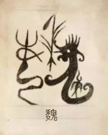 魏姓图腾,魏姓是以委蛇肥遗龙虺为图腾的炎帝支鬼姓的苗裔,其始祖是共工氏与蚩尤氏,两族为世代郎舅亲,共同以肥遗龙(一头双身龙)为图腾。魏图腾由三部分组成,左边的女性象征炎帝魁隗氏的母亲任姒,右边的一头双身龙象征鬼,中间的禾代表他们的农业发明。周文王裔孙毕万受封魏邑,子孙以国为姓。始祖:毕万。