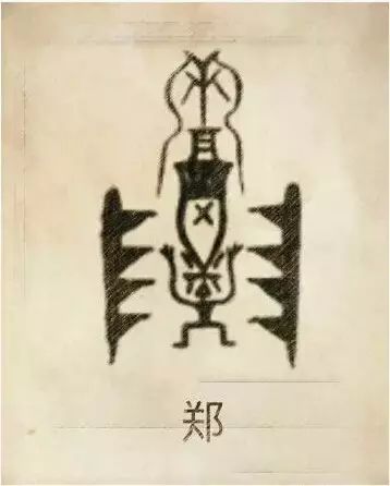 郑姓图腾,郑姓是炎帝祝融支以封建地为命名的族称,本为“酉”姓。郑由“酉”和“太阳运行的阶梯”组成。“酉”是仰韶时代的尖底瓶插在地上作为“酉时”(傍晚的时候)的观测仪器,很可能就是后代滴漏的原始形态。“酉”放在宫殿议事厅中柱下火塘(灶)前。“酉”后来演化为“尊”,所以“尊”又成为氏族族长的标志,在陶器时代相当于鼎,代表政权和权力。酉人居地为郑。