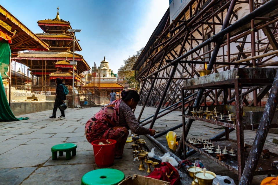 但比起都市混乱,宗教圣地吸引着更多游客。杜巴广场是加德满都的旅游胜地,每天除了无数信徒来此朝拜,还有来自世界各地的游客。