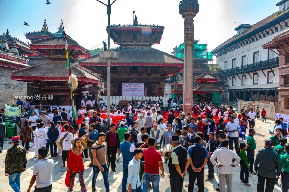 而在这一天,4月18日,当地人在广场上举办的“世界遗产日”与世界文化遗产杜巴广场达成一种不谋而合的默契。虽然不知道是每年都举办,还是突然盛行,各地学校和学生代表团的加入,使得这一天与众不同。尽管尼泊尔落后,古迹重建需要靠外国援助,但古迹保护意识的教育在这一瞬间可见一斑。