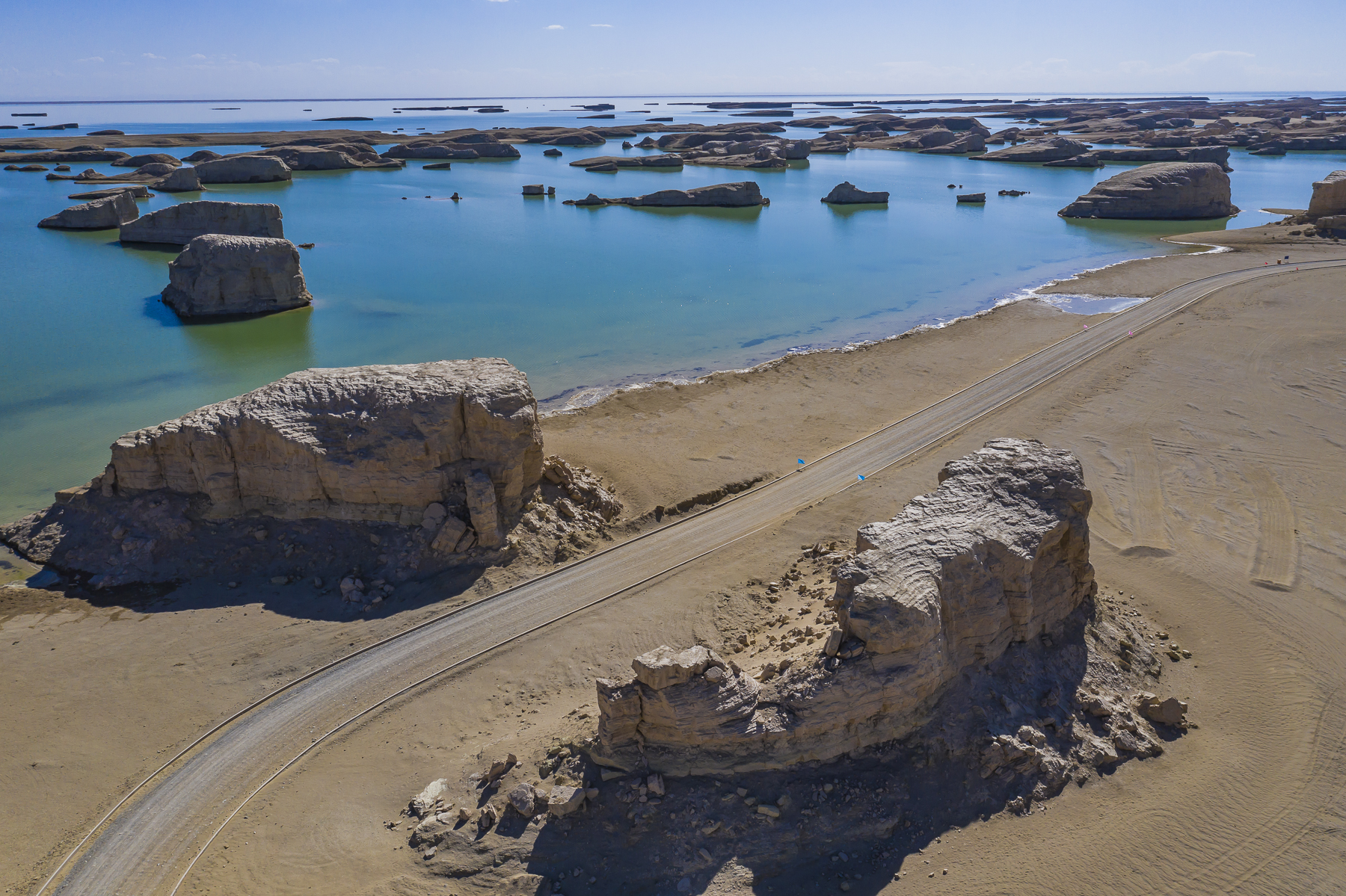 从青海第二大城市格尔木出发,向西北大柴旦方向,三个小时车程就到了水上雅丹,放眼望去,在碧波荡漾的湖面上,散布着成群的、形态各异的雅丹地貌蔚为壮观。这里也是全球唯一的、世界上最美的水上雅丹奇观。