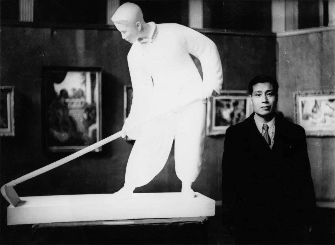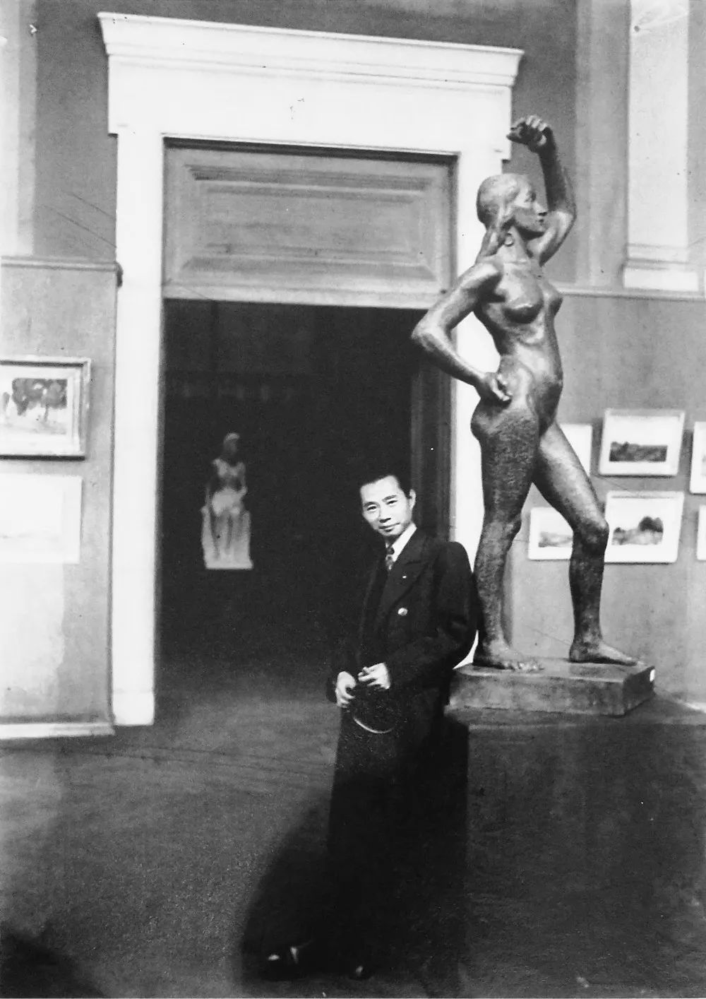 滑田友与作品《农夫—少年中国》在 1946年展览会