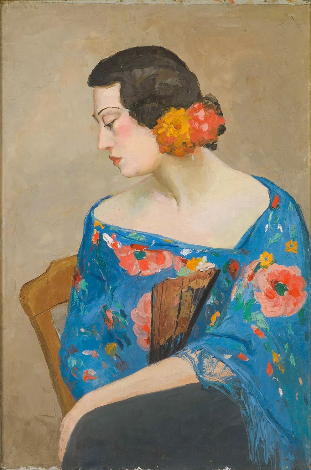 对中国传统的古代人物画进行油画转换,张弦其实是最早的尝试者之一。这幅画有点东方神韵,用笔像中国仕女画。