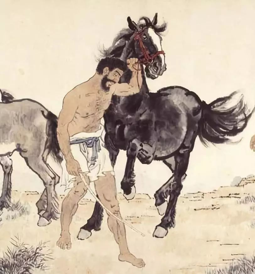 徐悲鸿是第一个打破传统国画和油画界限的人,标志就是1931年他画的《九方皋》。他也是第一个将裸体植入到国画创作里面的人,典型的中西合璧。