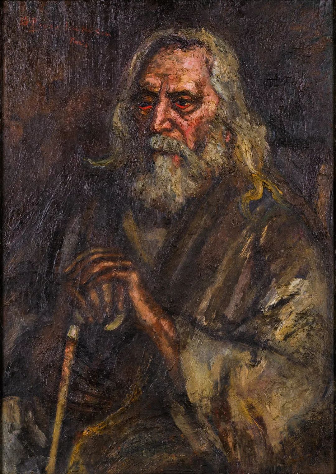 在象征主义上,就是像罗丹模特那个老者,眼眶血红,这种强烈的笔触、色彩的冲突,都是野兽派的用笔用色,在刘海粟的画里表现得十分充分。