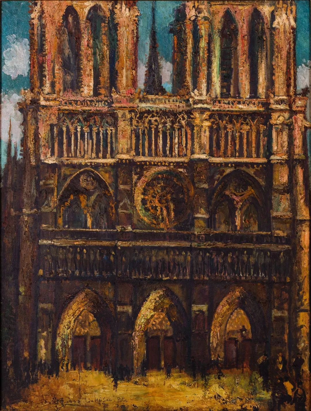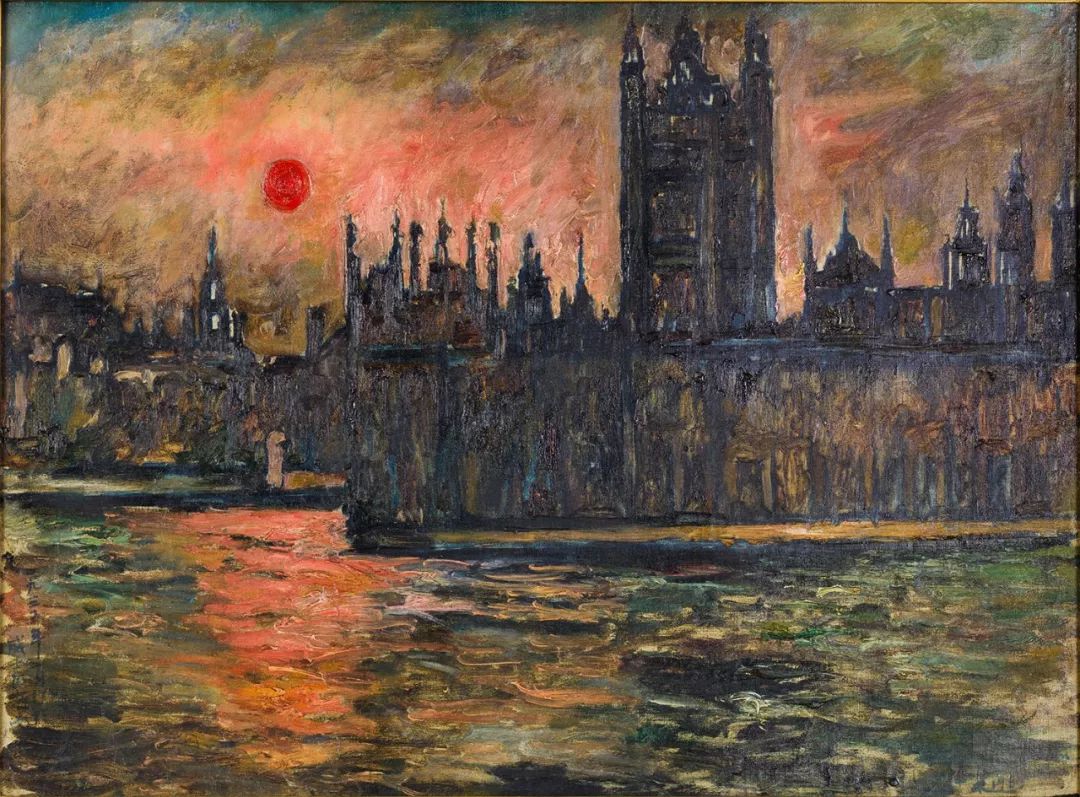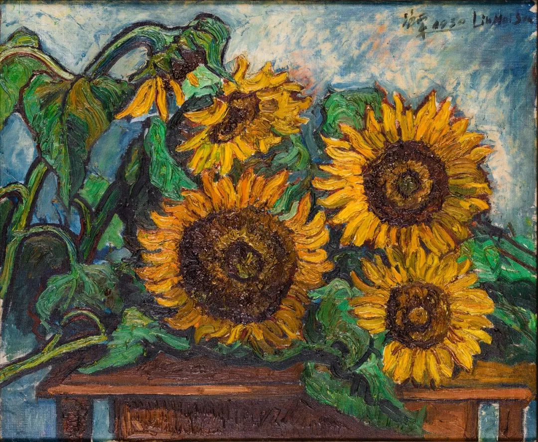 刘海粟对野兽派非常热爱。比如正在展出的蒙马特高地、圣心大教堂、卢森堡公园、威斯敏斯特大厦,这些几乎跟印象派莫奈的创作角度都一样。另外《秋葵》,那几乎是直接向梵高进行半临摹半写生的。