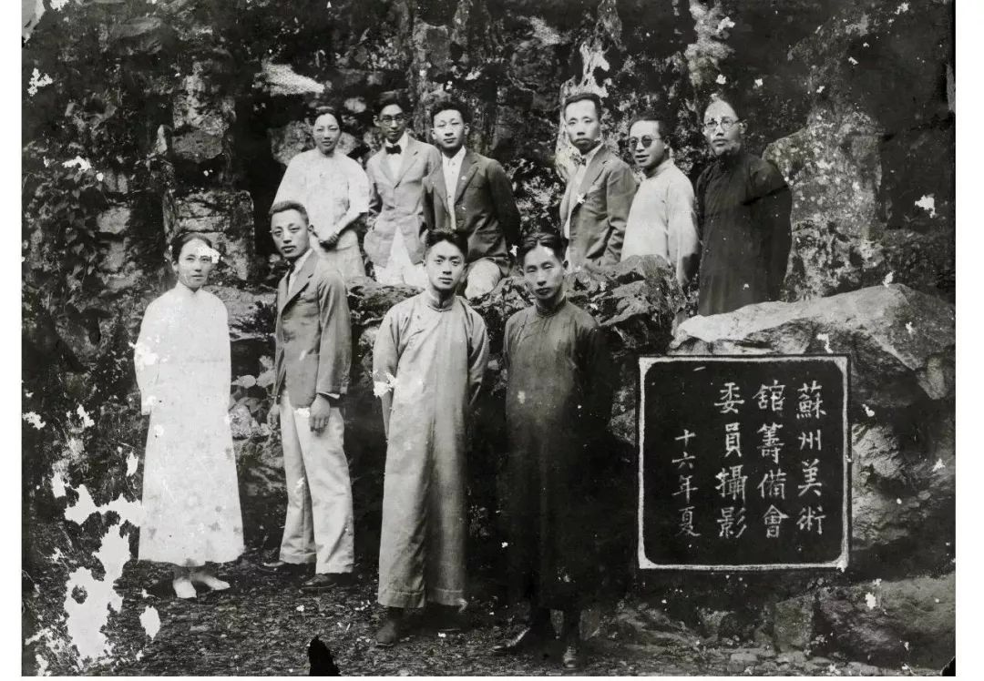 1927年苏州美术馆筹备委员会合影,后排右三是颜文樑