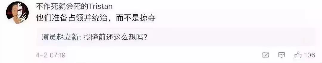 眼看他要作大死,有网友好心拉他一把,回复他“日本人是准备占领并统治中国,所以没有烧掉故宫”。他不领网友的情,质疑道,“投降前还这么想吗?”