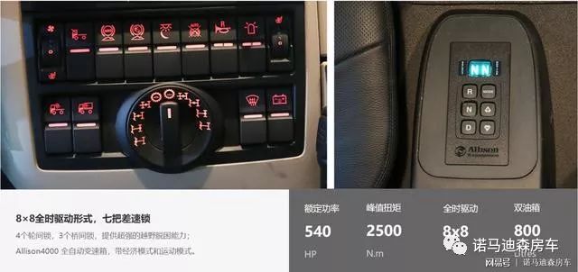 “领航者”全车配置的7把差速锁及ALLISON4000的6挡位变速箱在之前的篇幅已经介绍过了,并且变速箱配置行星齿轮轮边减速,附带带公路及越野双模式减速档,这里就不详细介绍了。大的越野能力“领航者”也是驰骋千里,纵横荒野!