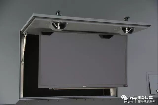 在右侧车厢的中部配置了外置翻转式SONY 32寸LED液晶电视,实现户外休闲时可以观看卫星电视或者是移动存储盘内的影音,休闲娱乐两不误。