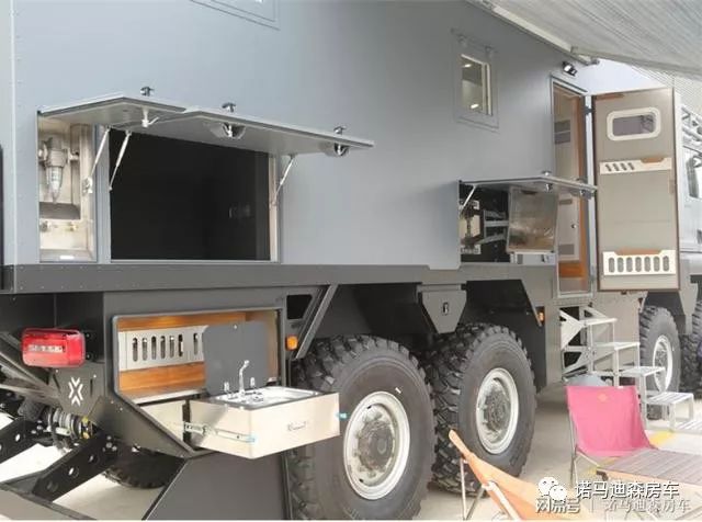 在往车尾部走,就可以看到了外置水吧、外置厨房和外借加水系统。