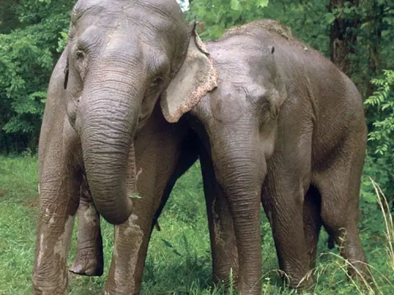 雪莉与这头名为“珍妮”的亚洲象发现彼此时,情绪都突然激动起来。它们不停地低声吼叫着,用力靠近对方,几乎要把阻隔在它们之间的铁栏压弯。工作人员也很费解,他们从未见过这样的场面——激烈、紧张、却不带攻击性,人们甚至能感觉得到两头大象的兴奋和欣喜。当铁门打开,雪莉和珍妮靠在一起,用长长的鼻子检查对方身上的伤疤。