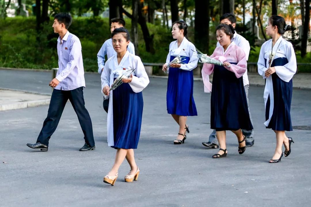中高跟鞋在平壤几乎是强制性穿着的,因为它能为首都女性带去更好的形象,肉色丝袜+高跟鞋,就是最典型的平壤女人。