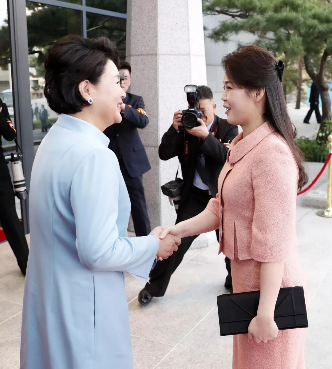 传统的同色系套装,搭配小巧的胸针,再配上精致的名牌手袋,低调却不失优雅。从波点印花到荷叶边的点缀,对于朝鲜人民而言,都充满新奇与惊喜。李雪主的出现赋予了朝鲜女性更多的自由,她频繁地高调亮相更是掀起了朝鲜女性追求时尚的热潮。