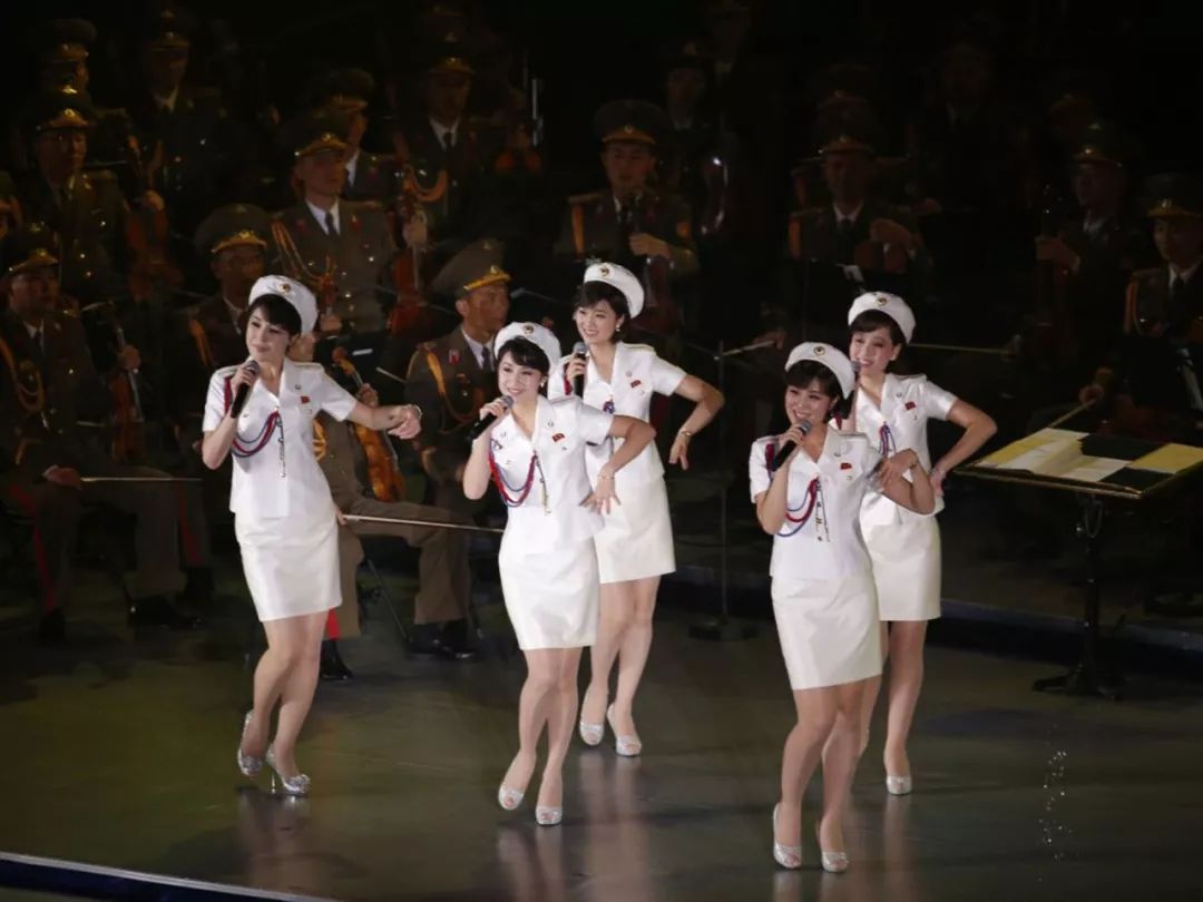 除了李雪主,朝鲜人民的时尚KOL还有一支名叫Moranbong的五人音乐组合,据说乐队中的女性由金正恩精心挑选,因此她们不仅看上去风格很“正统”,在穿着上也比李雪主保守许多。