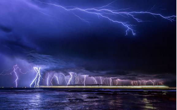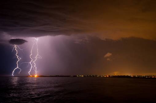 如果在夜间拍摄雷电,很有可能你会得到非常出色的雷电图片。笔者以为拍摄雷电最好的时机应该是天刚黑不久的时刻,或者天空乌云密布的时刻,这时画面中的整体环境不会太黑,再加上雷电的补光,会得到细节非常丰富的影像。