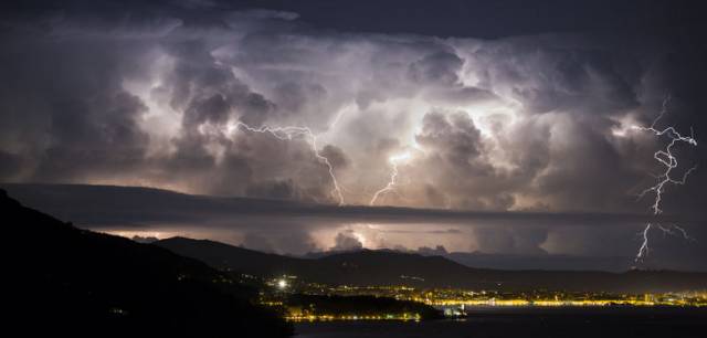 镜头推荐大家选用广角镜头。拍摄这种雷电时一般都要带上周围的环境,否则光是一个雷电无法表现出气势。广角镜头能有效地表现这种气势,加大纵深感。