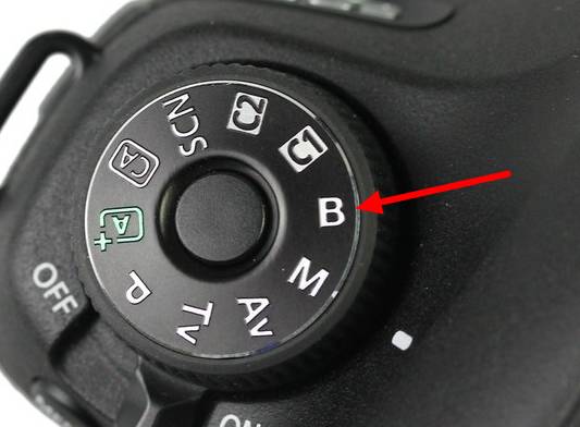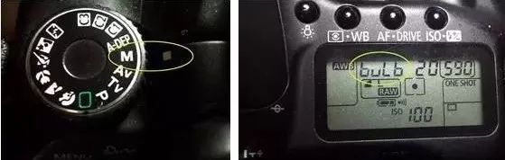 如何将相机设置成B门模式?通常可直接转动相机上的机顶转盘,调节到B门模式(低端相机没有该标志)。