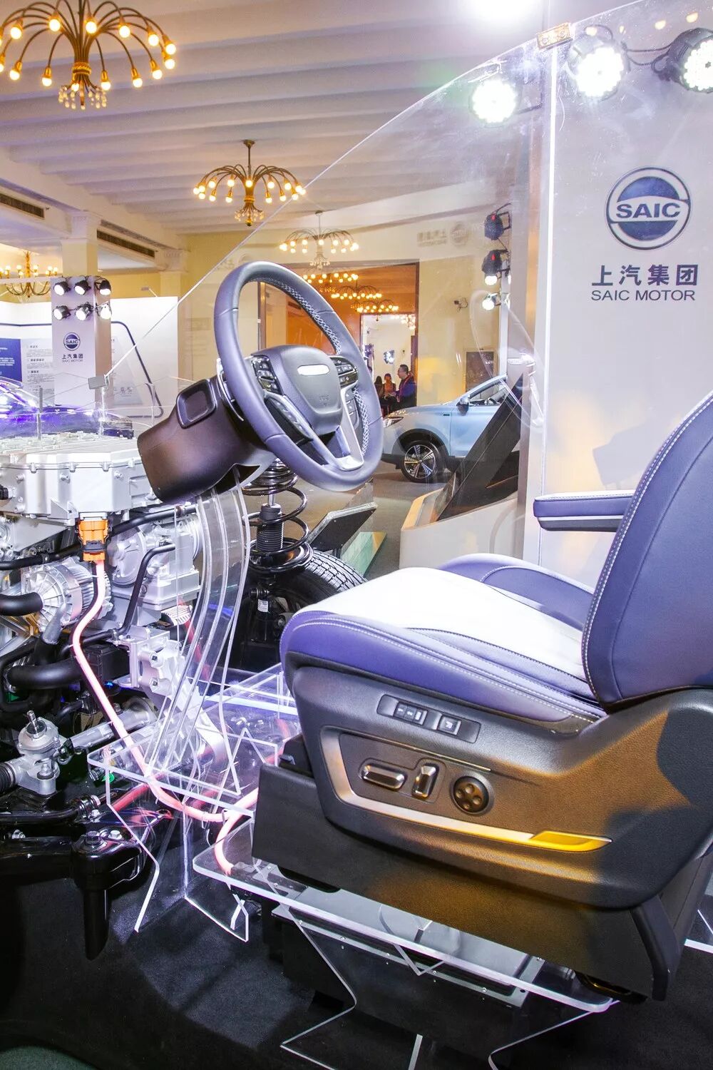 2019年5月10日,上海。中国品牌日,上汽大通G20FC氢燃料电池车,氢燃料汽车底盘展示。