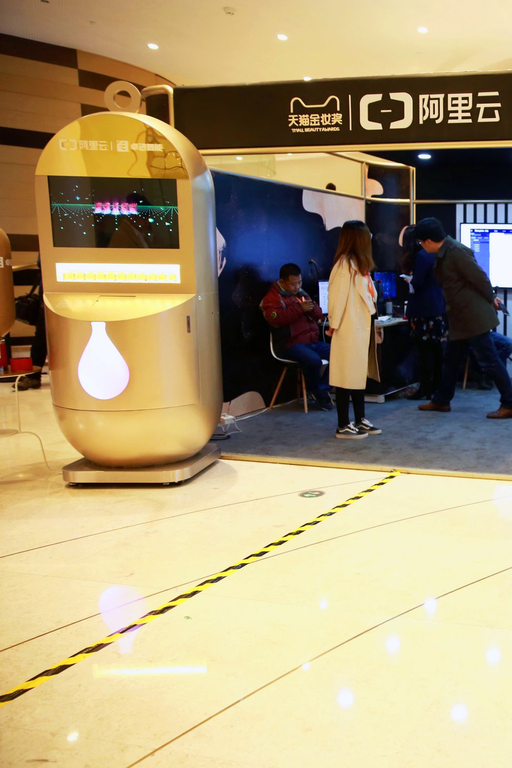 2019年3月4日,上海,阿里云移动胶囊售卖机器人,可以主动招揽顾客,提供产品。