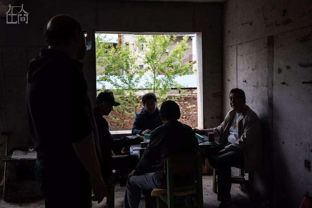 ■ 鹤岗市中心的一处烂尾楼,几位市民在楼房里面打麻将。