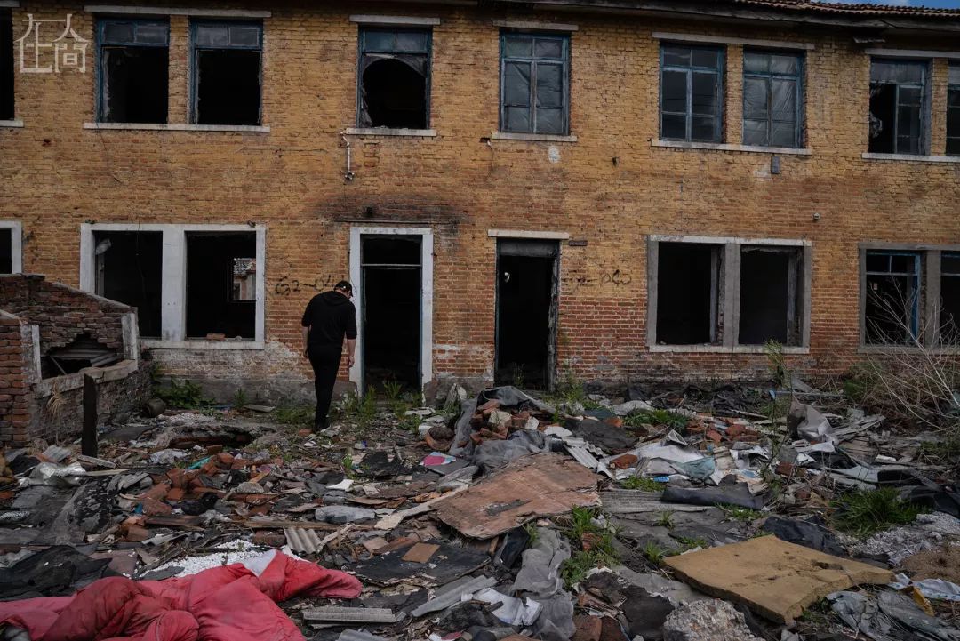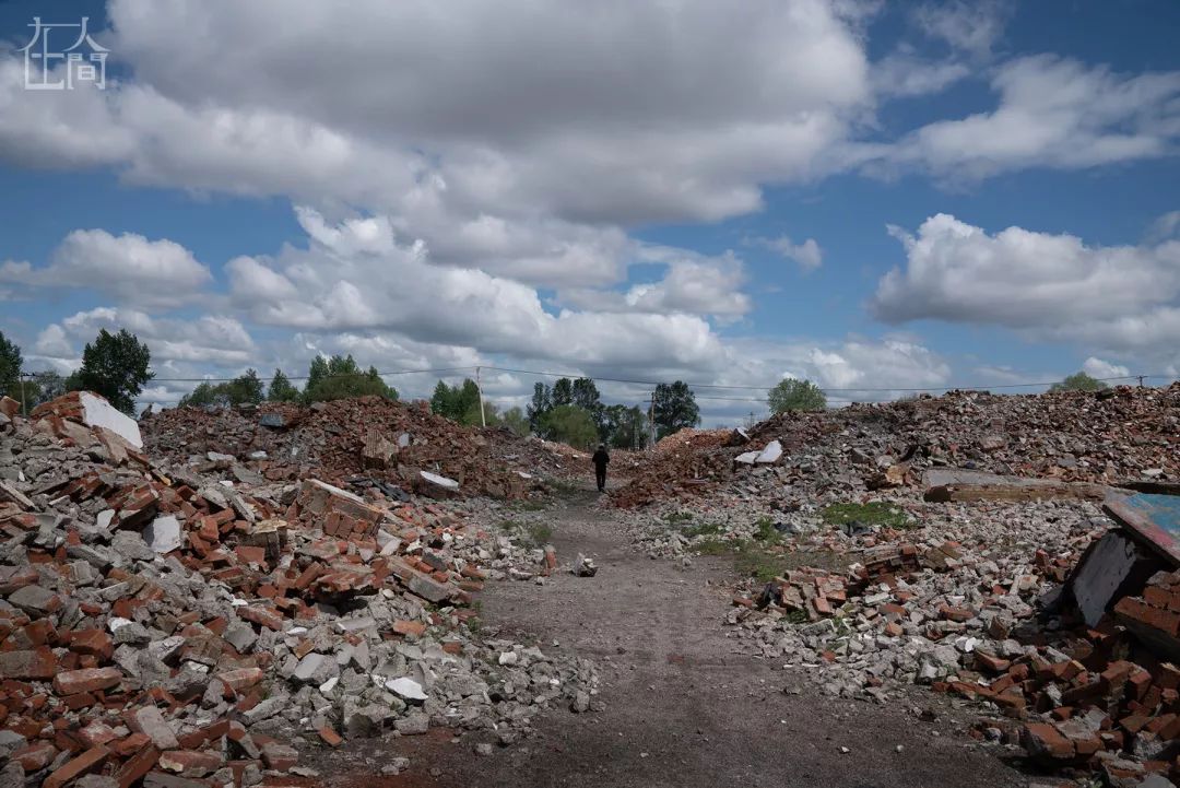 ■ 薛宝鹤走在鹤岗一处废墟当中。电影《锤子镰刀都休息》曾在此取景,当时这里还是成片的老式居民楼,现在已经全部拆除。