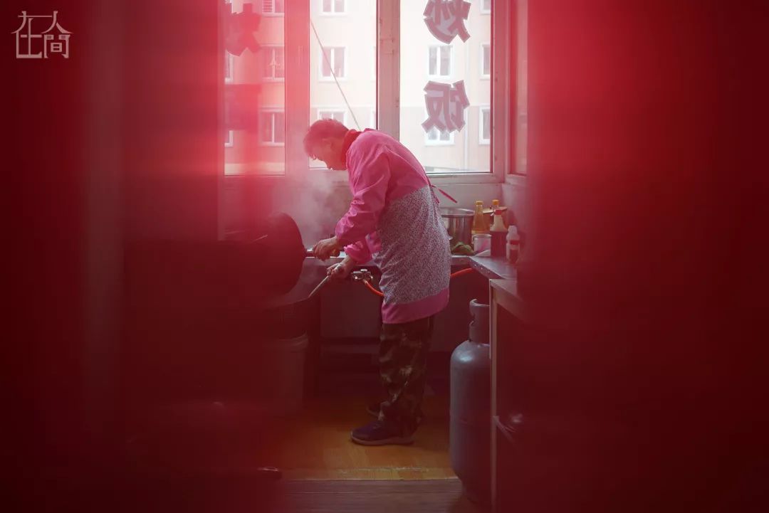 ■ 李传富在自家小餐馆的厨房里做饭。今年5月,房客退租之后,李传富把其中一套房子改成了小餐馆。