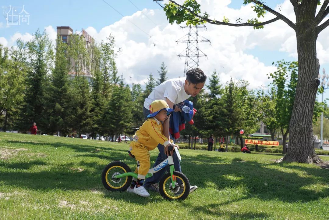 ■ 鹤岗天水湖公园,王野虓陪孩子玩耍。
