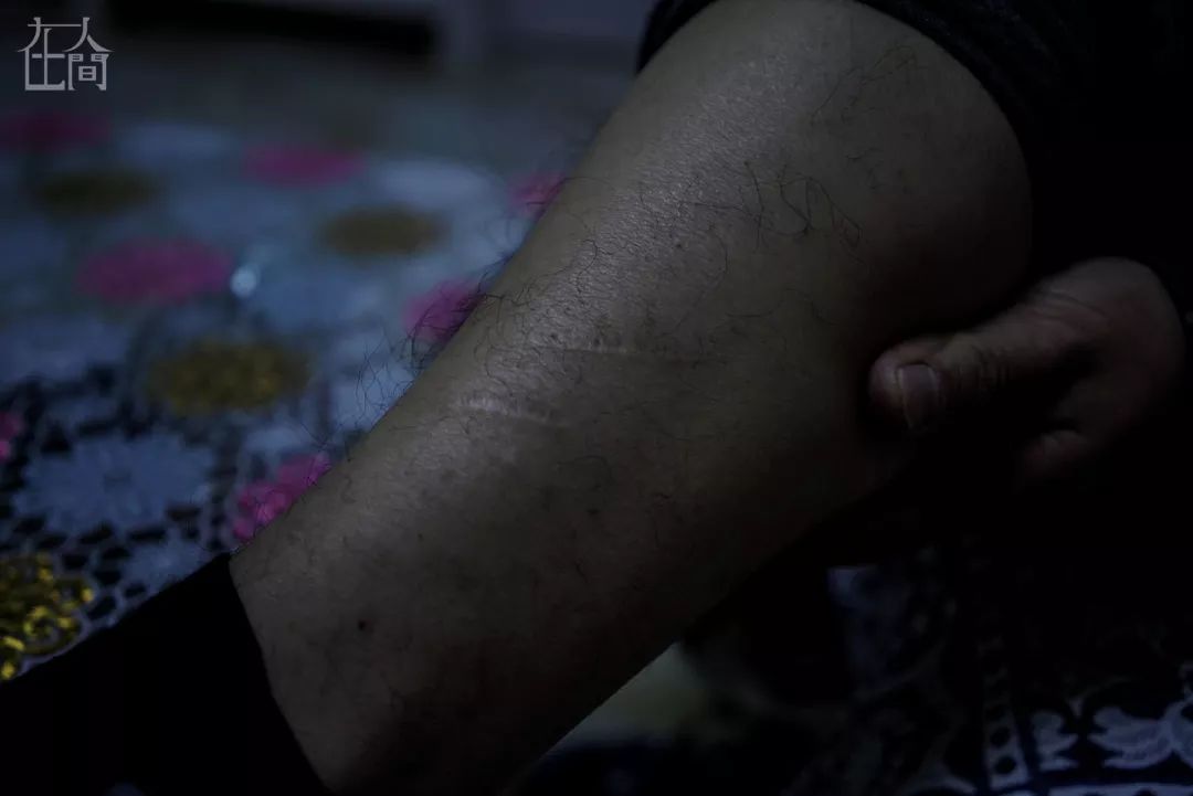 ■ 李传福下矿期间腿部受伤留下的疤痕。