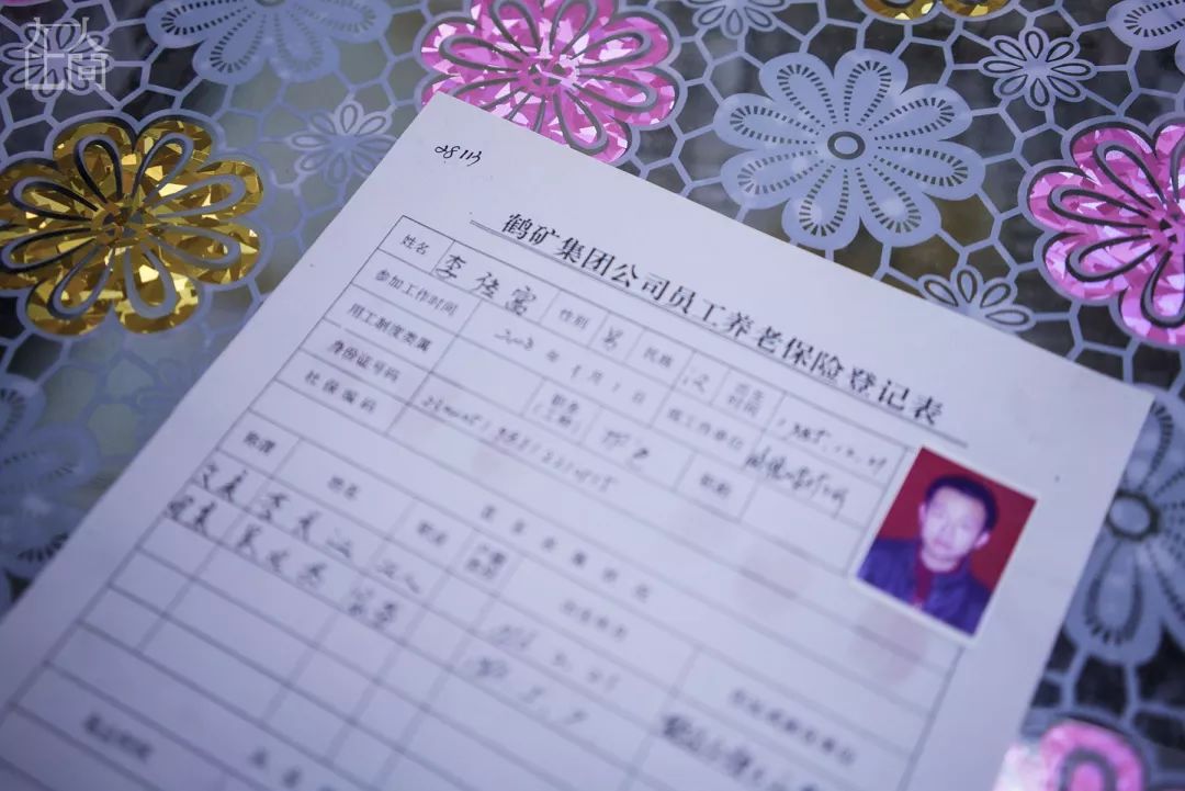 ■ 李传富展示在鹤矿集团的养老保险登记表。