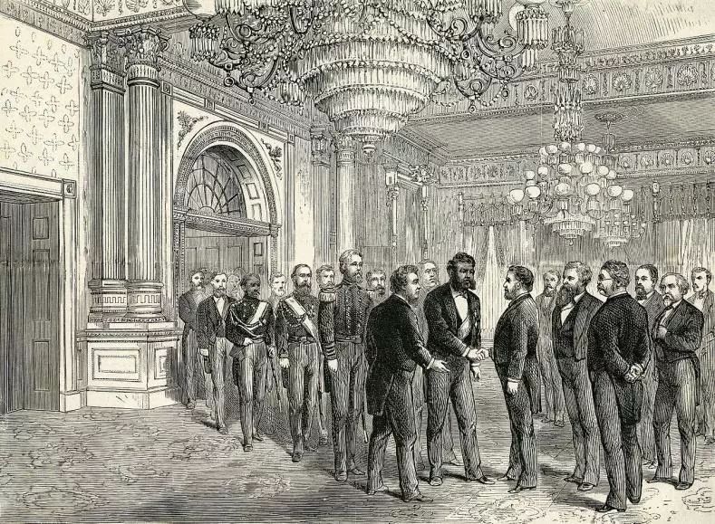 ▲夏威夷王国国王在白宫求见美国总统。夏威夷王国成为了大国之间争斗的香饽饽,而他们也只能在不断博弈中求得安稳