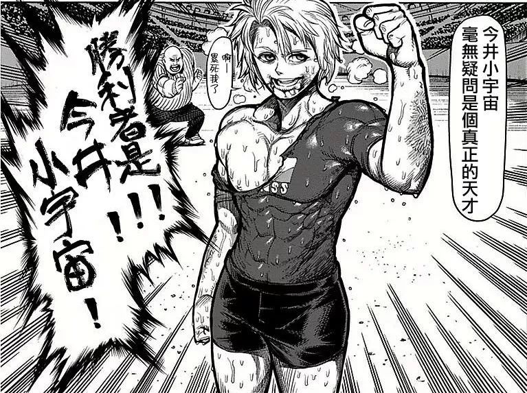 在第45话中,金井在对手一记直拳打来的空档做了一招飞身三角绞,动作发动时机恰到好处,双腿像蛇捕猎一样死死“咬”住对手,直接将劣势变为优势降服了体型力量远超于他的对手。