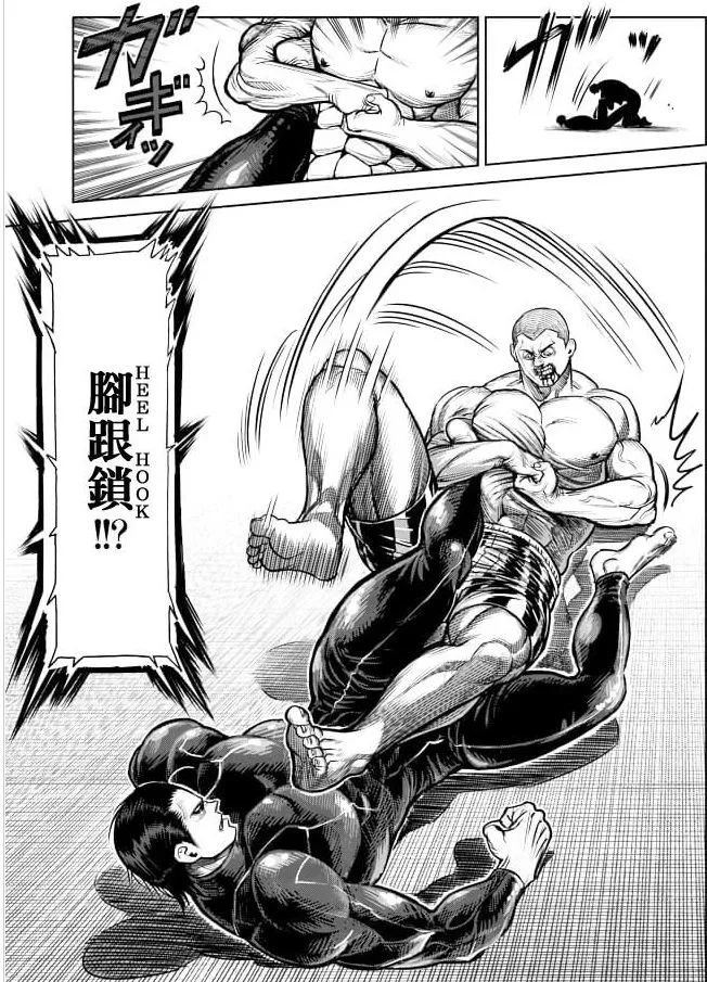 在113话中,大久保直也在面对号称“最强斗技者”的牙时,先是抱双腿摔让对手倒地,紧接着就使出了一招足跟勾,但还是被同样精通地面技术的牙逃了出去。